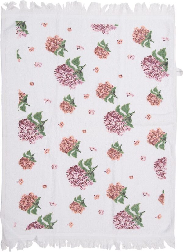 Dit door Clayre & Eef zelf ontworpen gastendoekje met roze hortensia, is perfect als handdoek voor het toilet of voor in de keuken. Het gastendoekje is ideaal om cadeau te geven. Past perfect bij de rest van het assortiment.