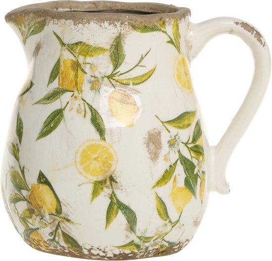 Breng een frisse en elegante sfeer in je interieur met deze prachtige Limone kan van Chic Antique, voorzien van een charmant citroenmotief. Deze keramische kan is geïnspireerd op de Franse en mediterrane woonstijl en vormt een stijlvolle toevoeging aan je woonkamer, keuken, serre of terras.