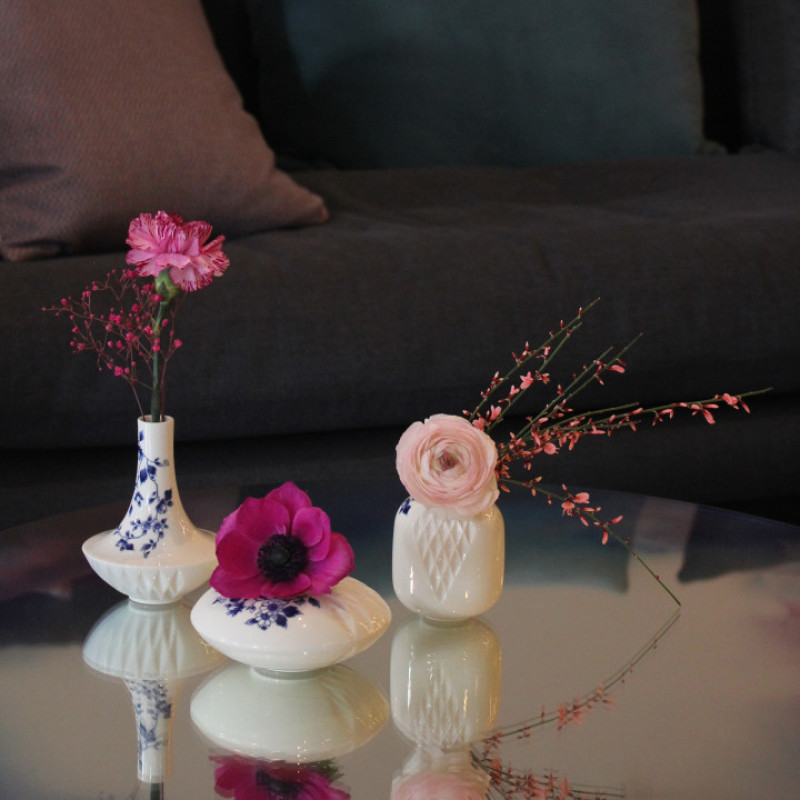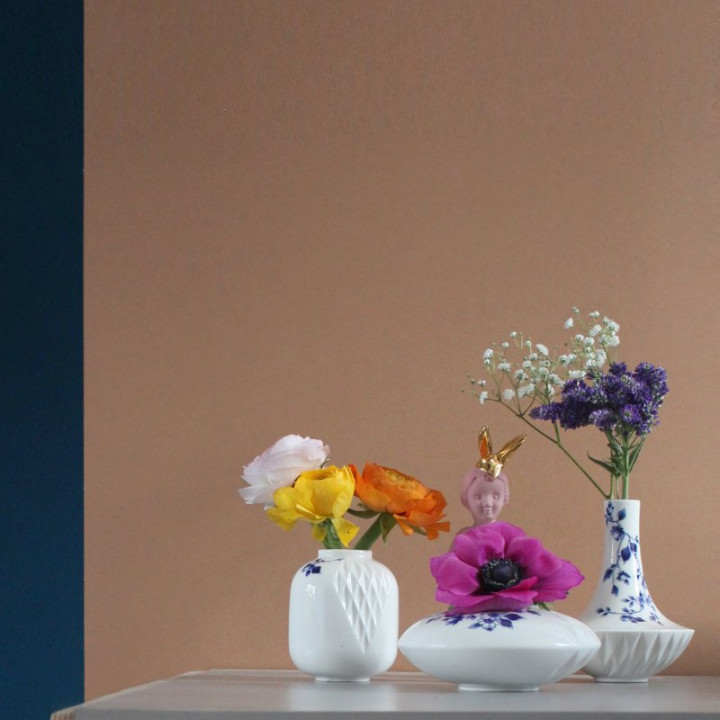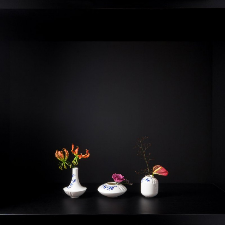 De keramische tradities van Aziė en Nederland zijn onlosmakelijk met elkaar verbonden. Dit zie je terug in de collectie Blauw Vouw van designer Romy Kühne. Wat zij heeft gemaakt is een bijzondere samensmelting van de Aziatische vouwkunst Origami en het traditionele Hollandse Delfts blauw. Naast een servies heeft zij ook en reeks vazen ontworpen die leuk met elkaar gemixt kunnen worden.
