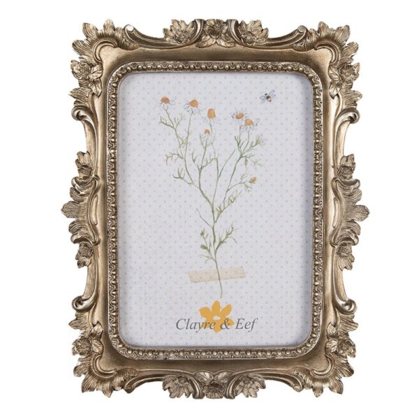 Decoratieve goudkleurige fotolijst in een barokstijl. Deze fotohouder is geschikt voor zowel ophanging als staand gebruik, zowel in verticale als horizontale positie. Het is een prachtige decoratie voor elk interieur.