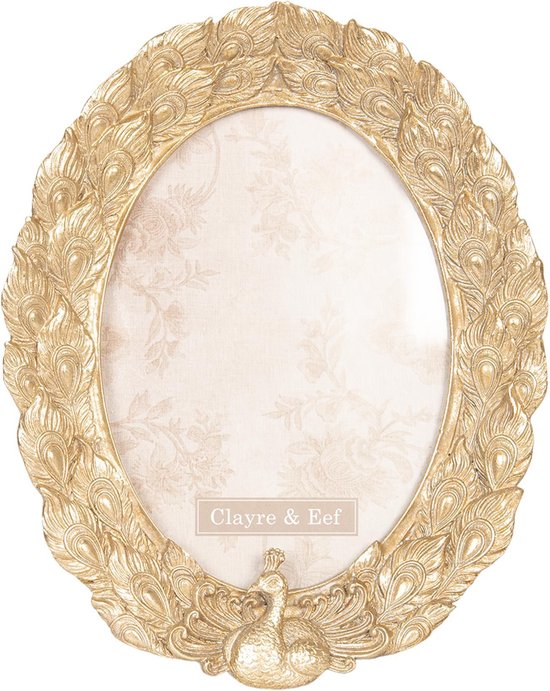 Goudkleurige ovale fotolijst met een pauw in een barok stijl van het merk Clayre & Eef