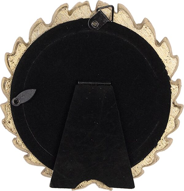 Decoratieve goudkleurige ronde fotolijst in barokstijl. Deze fotohouder is geschikt voor zowel ophanging als staand gebruik in een verticale positie. Het is een prachtige decoratie voor elk interieur.