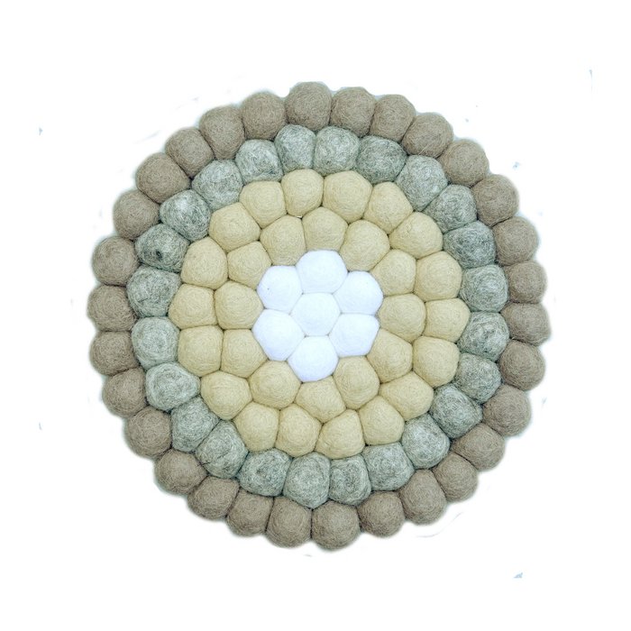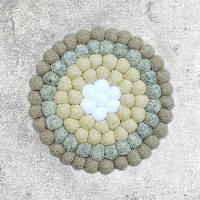 Mooie onderzetter gemaakt van vilten bolletjes. Rond model.
