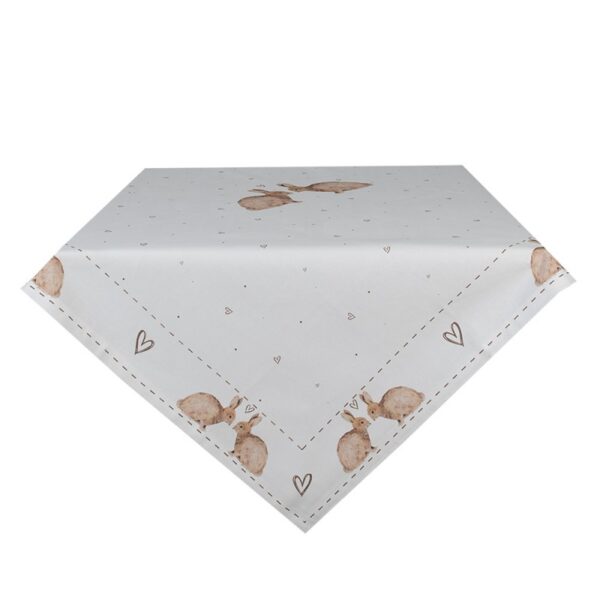 Clayre & Eef Tafelkleed 100×100 cm Wit Bruin Katoen Konijn