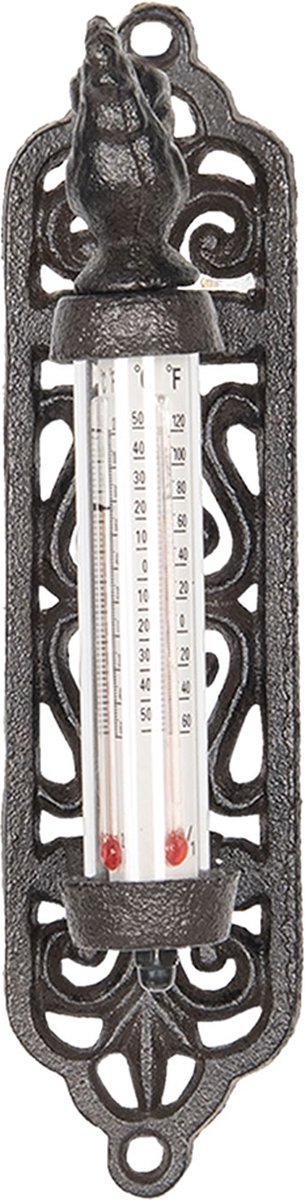 Bruin metalen landelijke thermometer met een haan van het merk Clayre & Eef