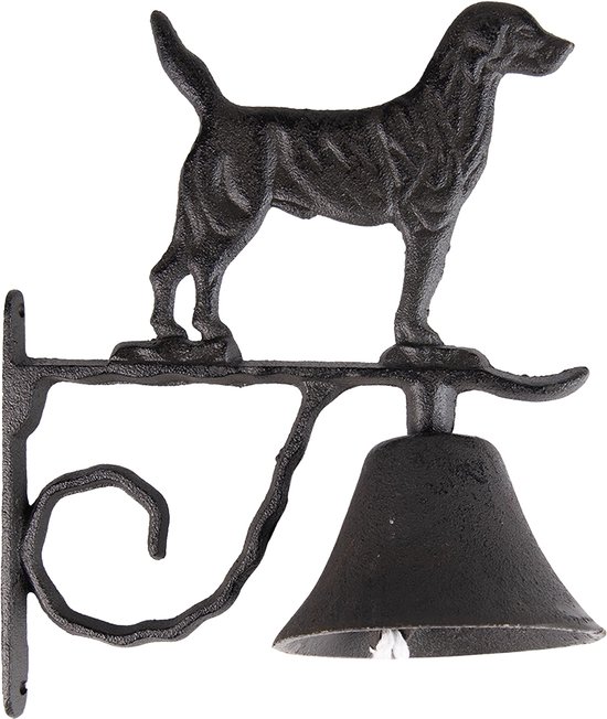 Stijlvolle sierlijke zwarte ijzeren deurbel met klepel, gedecoreerd met een hond, in een landelijke stijl met een klassieke uitstaling, van het merk Clayre & Eef.
