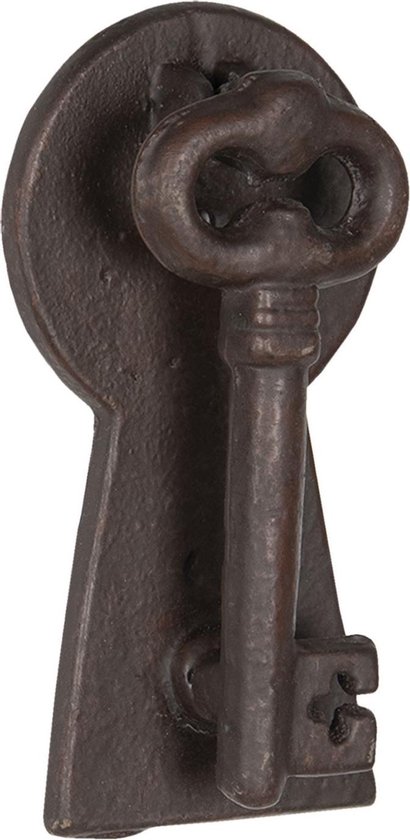 Bruine metalen deurklopper met een sleutel.Met deze deurklopper van het merk Clayre & Eef maakt u uw voordeur helemaal af.